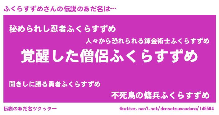 | ヒーロー風カッコイイあだ名 | 『幻影騎士フク』『スーパーフクラスズメ』 |