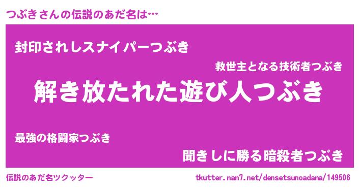 | 女子向けラノベタイトル風あだ名 | 『つぶきの卵を拾いまして』 |