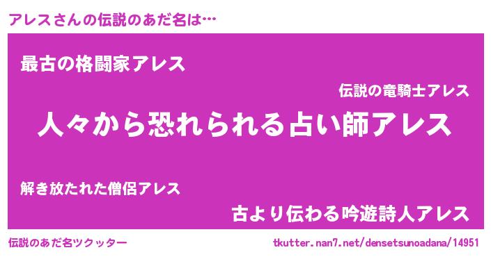 | 意味不明あだ名 | 『眠気覚ましガムアレス味』『自称アレス』 |