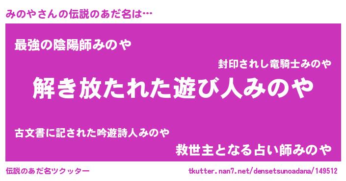 | 意味不明あだ名 | 『とにかく怪しいみのや』『自称みのや』 |