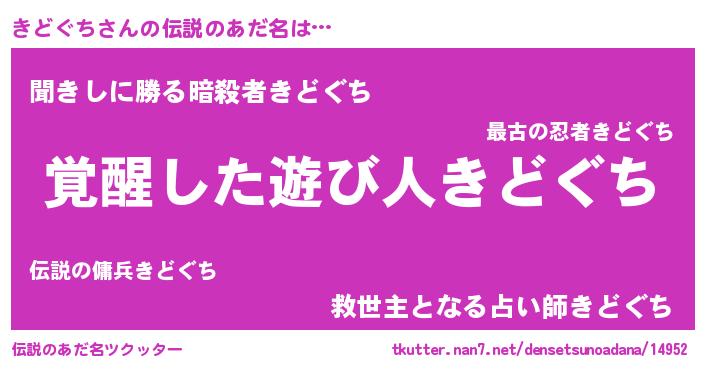 | ヒーロー風カッコイイあだ名 | 『天弓騎士キド』『ネオキドグチ』 |