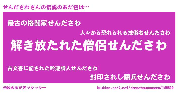 | 意味不明あだ名 | 『とにかく怪しいせんださわ』 |