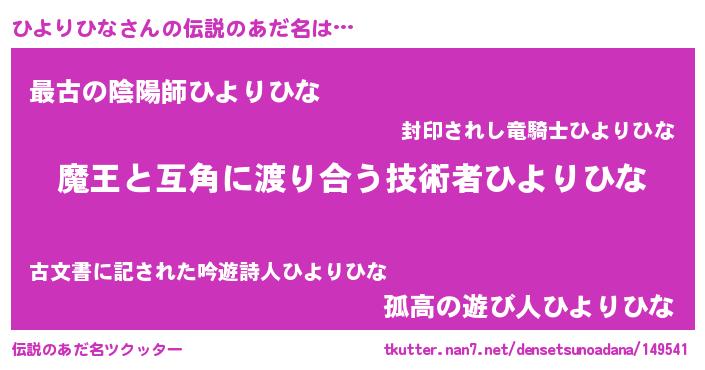 | ヒーロー風カッコイイあだ名 | 『愛の使者ひよりひな』『仮面ヒヨダー』 |