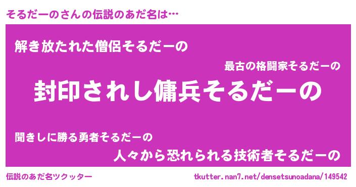 | 意味不明あだ名 | 『ペロリンそるだーの』『自称そるだーの』 |