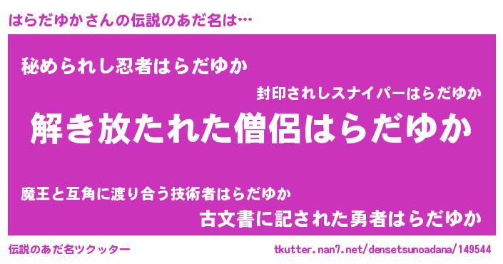 | 意味不明あだ名 | 『自称はらだゆか』 |