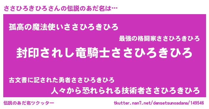 | 胡散臭い通販商品みたいなあだ名 | 『億万長者になれるブレスレット…その名も「ささひろきひろ」』 |