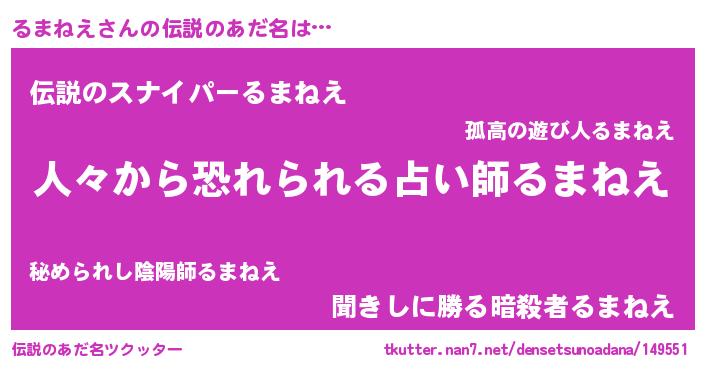 | ヒーロー風カッコイイあだ名 | 『正義の使者るまねえ』『仮面ルマダー』 |