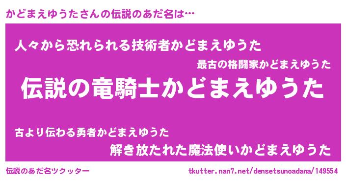 | ヒーロー風カッコイイあだ名 | 『スーパーカドマエユウタ』 |