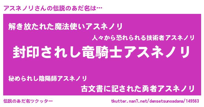 | 意味不明あだ名 | 『住所不定無職アスネノリ(13歳)』 |