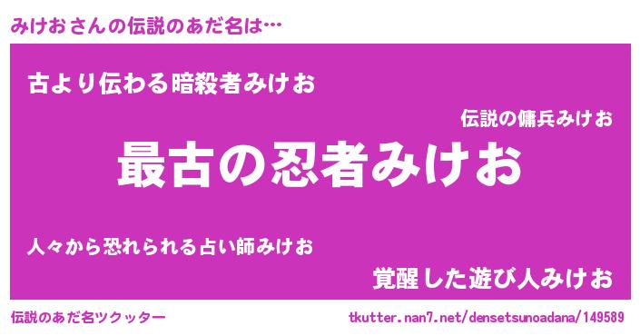 | 意味不明あだ名 | 『自称みけお』『住所不定無職みけお(41歳)』 |