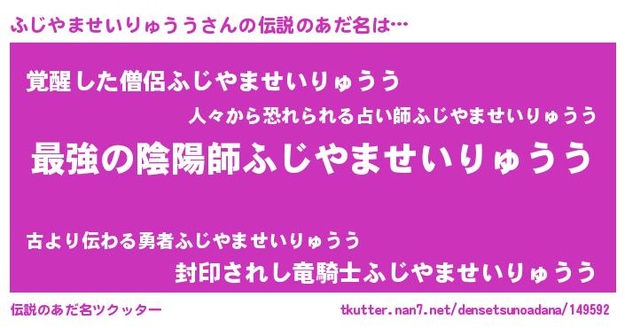 | 意味不明あだ名 | 『ふじやませいりゅううフォーエバー』 |