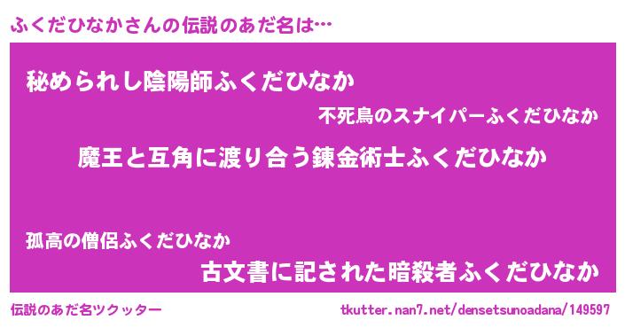 | 肩書あだ名 | 『ふくだひなか大将』『ふくだひなか総統』 |