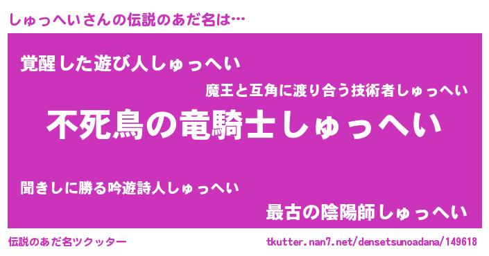 | 女子向けラノベタイトル風あだ名 | 『しゅっへい姫と円卓の騎士』 |