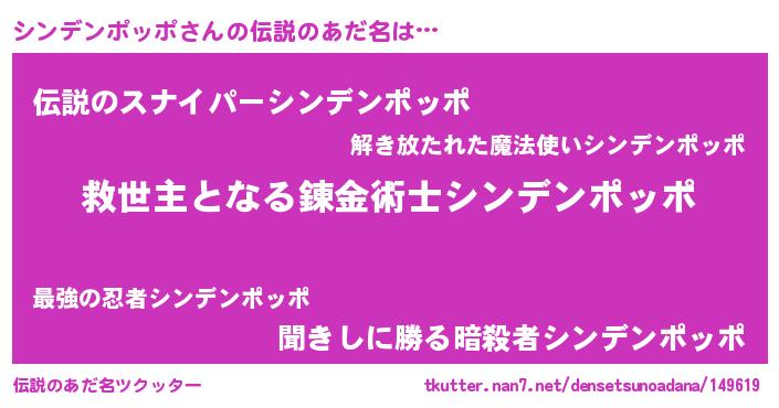 | 胡散臭い通販商品みたいなあだ名 | 『モンドセレクションを受賞した隕石のかけら…その名も「シンデンポッポ」』 |
