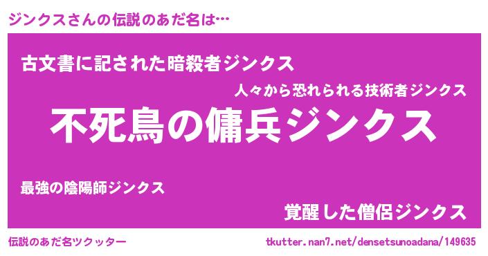 | ヒーロー風カッコイイあだ名 | 『スーパージンクス』『究極戦士ジンクス』 |