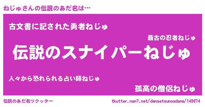 | 胡散臭い通販商品みたいなあだ名 | 『必ず成功する霊験あらたかなお札…その名も「ねじゅ」』 |