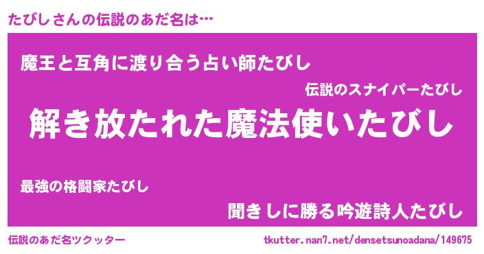 | 意味不明あだ名 | 『とにかく怪しいたびし』 |