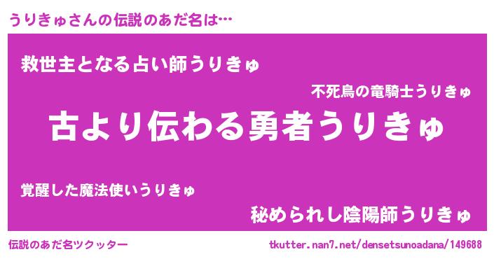 | ヒーロー風カッコイイあだ名 | 『ネオウリキュ』『正義の使者うりきゅ』 |
