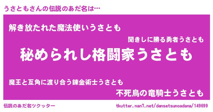 | 意味不明あだ名 | 『うさともフォーエバー』『自称うさとも』 |