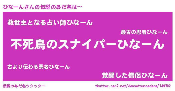 | ファンタジー風あだ名 | 『ヒナフェル』『ゼヒナトゥ』 |