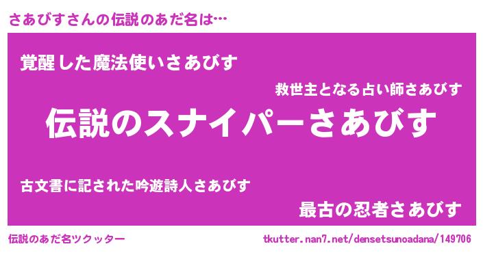 | ヘコむあだ名 | 『さあっふぃ~』『さあを』 |