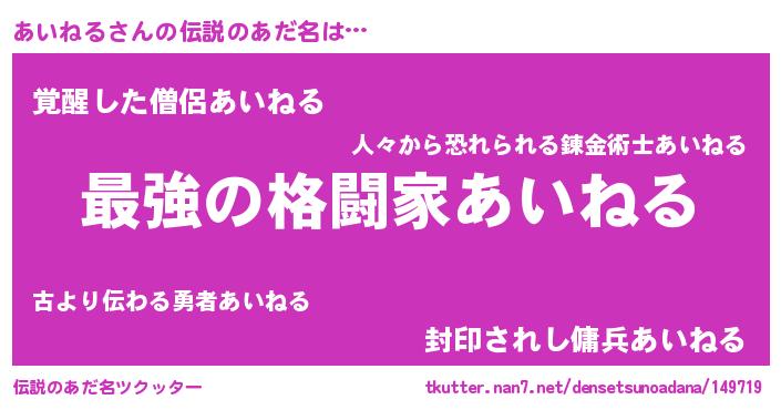 | 意味不明あだ名 | 『あいねるフォーエバー』 |