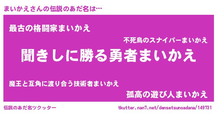 | ヒーロー風カッコイイあだ名 | 『仮面マイダー』『ネオマイカエ』 |