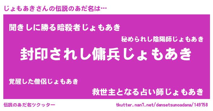 | ヒーロー風カッコイイあだ名 | 『スーパージョモアキ』『仮面ジョダー』 |