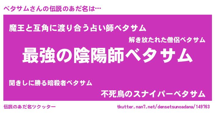 | 意味不明あだ名 | 『ベタサムフォーエバー』『自称ベタサム』 |