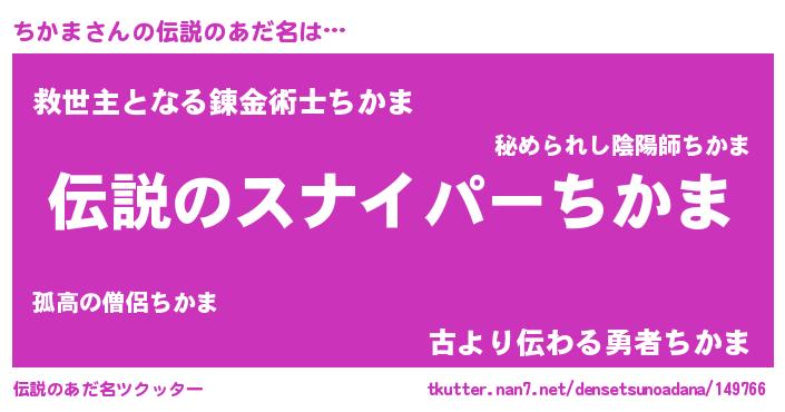 | ヒーロー風カッコイイあだ名 | 『仮面チカダー』『スーパーチカマ』 |