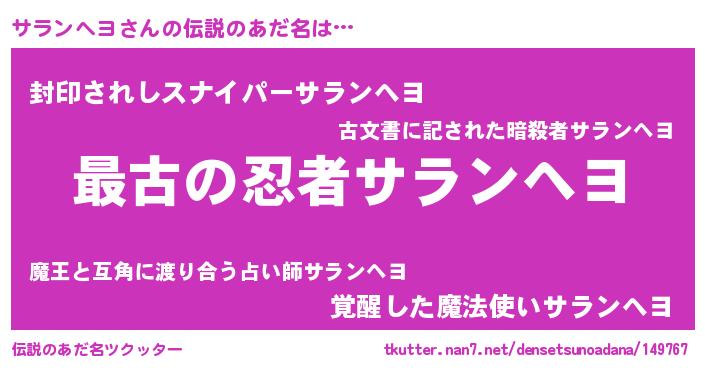 | ファンタジー風あだ名 | 『エターナルサランヘヨー』『ゼサラトゥ』 |