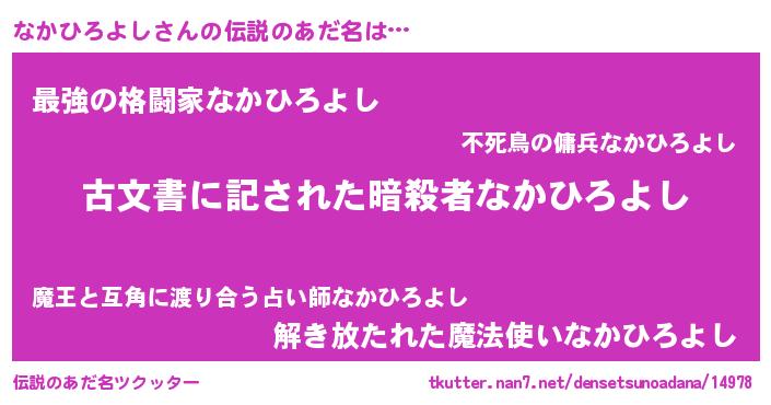 | 意味不明あだ名 | 『永久保存なかひろよし』 |