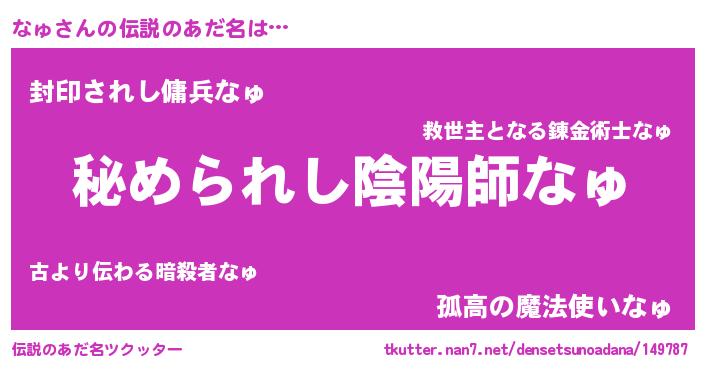 | ファンタジー風あだ名 | 『エターナルナュー』『ゼナュトゥ』 |