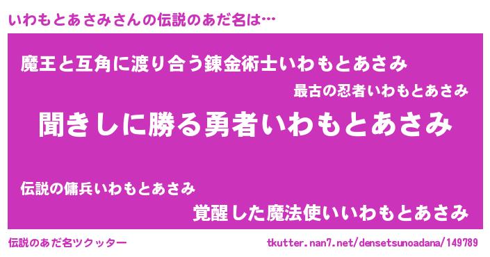 | ヒーロー風カッコイイあだ名 | 『仮面イワダー』『ネオイワモトアサミ』 |