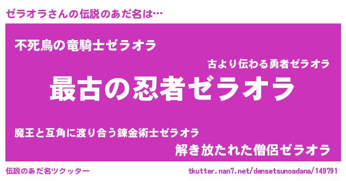 | ヒーロー風カッコイイあだ名 | 『ウルトラゼラオラマン』『天弓騎士ゼラ』 |