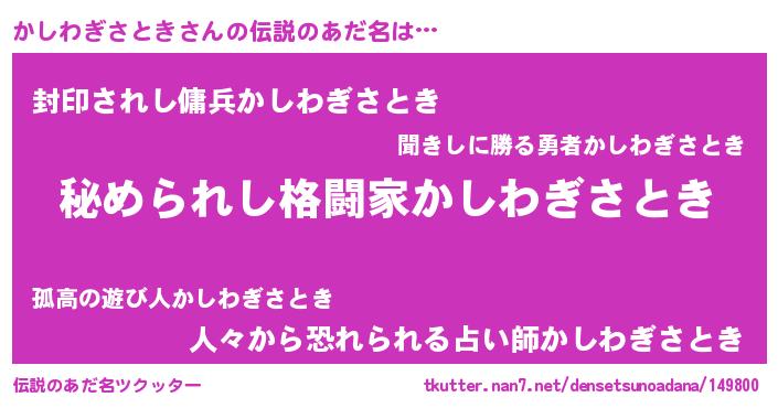 | ヒーロー風カッコイイあだ名 | 『ウルトラかしわぎさときマン』 |