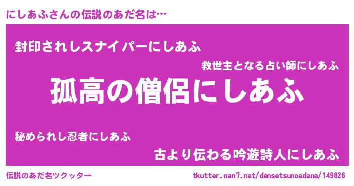 | 女子向けラノベタイトル風あだ名 | 『にしあふは平凡を望む』 |