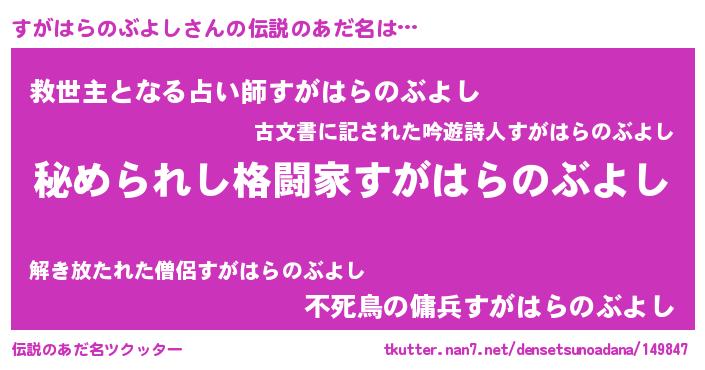 | 意味不明あだ名 | 『すがはらのぶよしフォーエバー』 |