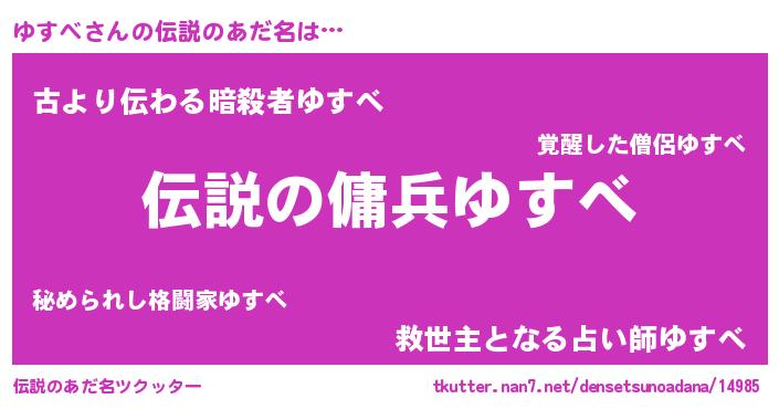 | 男性向けラノベタイトル風あだ名 | 『ゆすべの憂鬱』 |