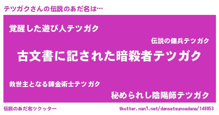 | ポケモン風あだ名 | 『ゼニテツ』『テツゴンZ』『テーツイ』 |