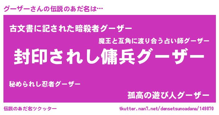 | 意味不明あだ名 | 『ペロリングーザー』『永久保存グーザー』 |