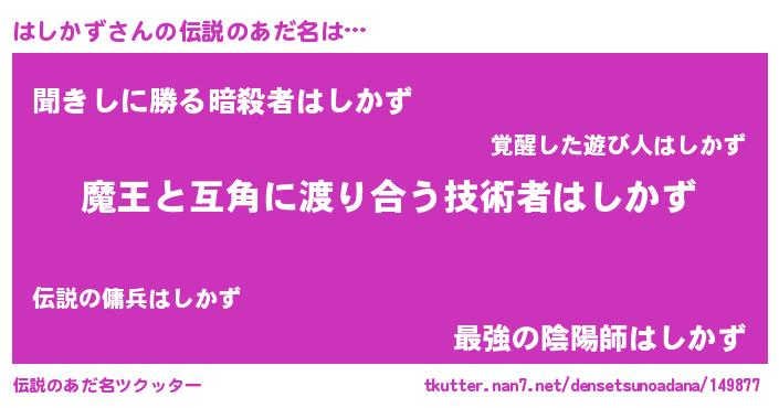 | ヒーロー風カッコイイあだ名 | 『友情の使者はしかず』『ネオハシカズ』 |