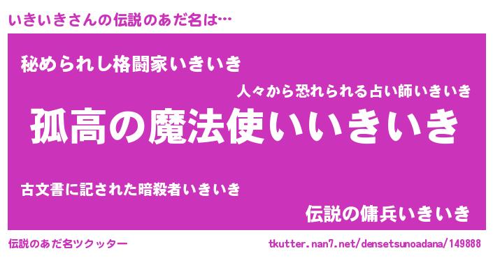 | 意味不明あだ名 | 『自称いきいき』『いきいきフォーエバー』 |