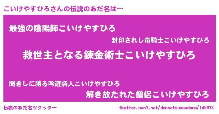 | 意味不明あだ名 | 『住所不定無職こいけやすひろ(91歳)』 |