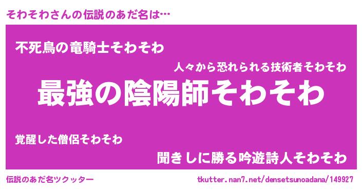 | ヒーロー風カッコイイあだ名 | 『ウルトラそわそわマン』『仮面ソワダー』 |
