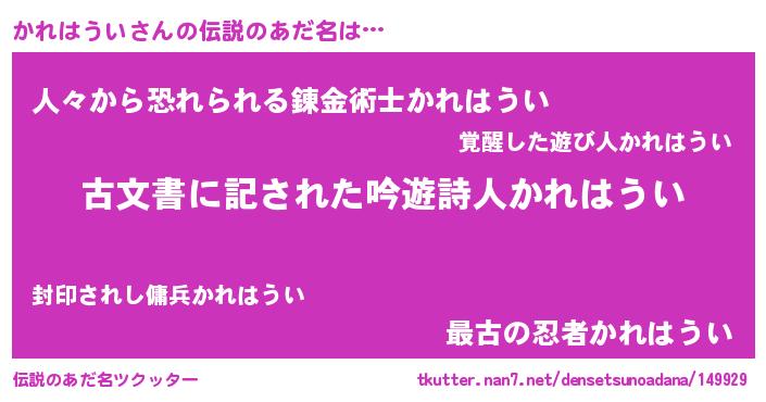 | 意味不明あだ名 | 『永久保存かれはうい』『自称かれはうい』 |