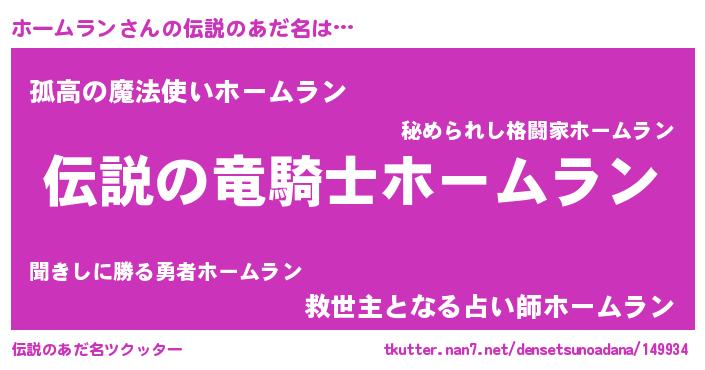| ヒーロー風カッコイイあだ名 | 『スーパーホームラン』『暗黒騎士ホー』 |