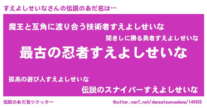| 意味不明あだ名 | 『住所不定無職すえよしせいな(47歳)』 |