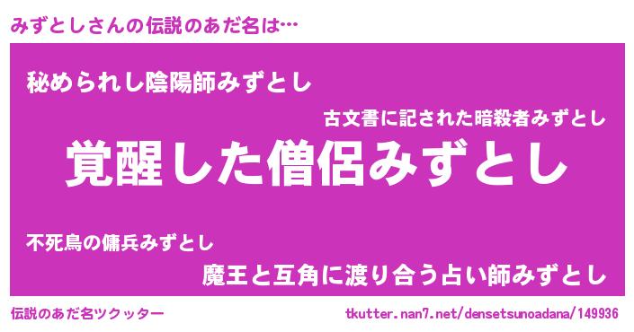 | 男性向けラノベタイトル風あだ名 | 『Re:みずとしから始める異世界生活』 |