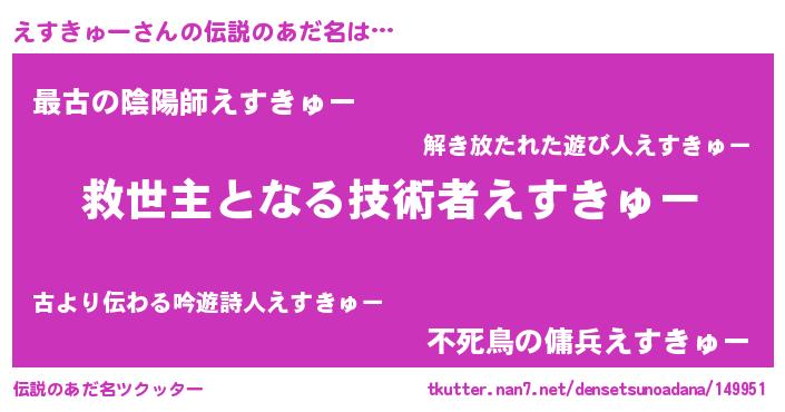 | ヒーロー風カッコイイあだ名 | 『天空の使者えすきゅー』『仮面エスダー』 |